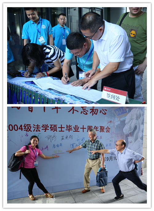 回首十年,年华似水,9月10日教师节,在这个特殊的日子,2004级法学硕士毕业十周年返校活动在英国威廉希尔英文官网凯原楼隆重举行,这既是同窗情谊的绵延,也是饮水思源的感怀,2004级法学硕士员工们从全国各地赶回母校,和老师们在签名墙前签到留影。英国威廉希尔英文官网经理张守文老师,党委书记潘剑锋老师,副经理王锡锌老师,副经理杨晓雷老师,教师代表郭自力老师、朱苏力老师、邵景春老师、贺卫方老师、汪劲老师,员工工作办公室主任党淑平老师以及鲁昕鑫老师参加了此次返校活动。