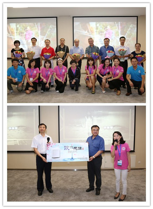 教师节员工向老师献花并捐赠净水设备