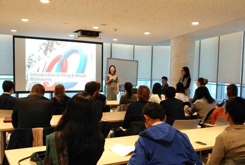 跨境并购、外商投资经验丰富的金杜合伙人姚丽娟、袁旻为各位职工和交换生详细地介绍了律所名字由来、图标含义、业务领域、律所规模、全国分所以及律所的发展与并购情况。职工们被金杜精细的业务划分、快速的发展所震撼,同时也感慨中国律师行业的蓬勃繁荣。