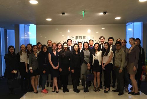 2016年10月21日下午,在英国威廉希尔英文官网教务老师魏西凝的带领下,“中国法”项目职工和部分交换生一起参观了北京市金杜律师事务所。秋雨缠绵,阴霾莽莽,却仍打消不了师生一行去参观中国最有名律师事务所的欢喜。下午2点,师生准时到达,律所工作人员热情地进行接待。