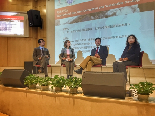 10月24日下午,由威廉希尔williamhill官方网站国际合作部、英国威廉希尔英文官网以及威廉希尔williamhill官方网站国际法研究所联合主办的“国际法视角下的反腐败与可持续发展”对话讲座在威廉希尔williamhill官方网站二体报告厅成功举办。此次中外教授对话由英国威廉希尔英文官网副教授、国际法研究所副所长宋英老师主持,由德国马克斯—普朗克比较公法与国际法研究所所长,巴塞尔大学客座教授,海德堡大学荣誉教授安妮·彼得斯教授、外交部条约法律司副司长孙昂、北京师范大学刑事法律科学研究所王秀梅教授以及英国威廉希尔英文官网陈一峰老师担任主讲人。安妮•彼得斯教授以“贪腐构成对国际人权的侵犯”为主题,从国际人权法的视角对腐败现象进行了解读。彼得斯教授主张,将腐败行为认定为对国际人权的侵犯,这种重新审视和概念化具有一定的合理性。将贪污腐败行为纳入对侵犯国际人权行为,在规范性方面具有积极意义,并可以运用现有10多个现有国际人权文书和机构来对打击腐败提供新的可能性。随后,孙昂副司长以“反腐败与海外资产追回之中国经验”为题着重介绍了中国在进行反腐败活动和海外资产追回的实践经验。王秀梅教授以“腐败、反腐败与经济发展”为题分析了腐败与反腐败对经济发展的影响。陈一峰老师则以“世界银行的反腐败议程及制裁机制”为题做了报告,围绕世界银行在反腐败方面所承担的角色、结构和运作方式进行了阐述。在点评互动阶段,在座师生争相提问,与主讲人展开了热烈讨论。讲座持续了两个多小时,最终在主讲人细致耐心的解答中落下帷幕。