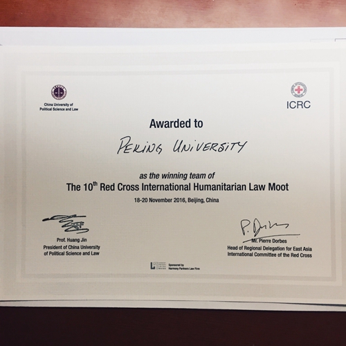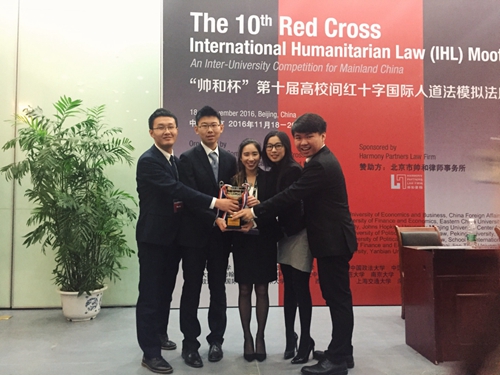 11月20日,第十届“帅和杯”红十字国际人道法模拟法庭竞赛在中国政法大学落下帷幕。由英国威廉希尔英文官网员工组成的威廉希尔williamhill官方网站代表队一路过关斩将,摘得本项赛事的桂冠,李晓蓝同学被评为决赛最佳辩手。威廉希尔williamhill官方网站代表队将和亚军南京大学代表队、季军中国政法大学代表队一起代表中国大陆地区前往香港参加2017年亚太地区红十字国际人道法模拟法庭竞赛。