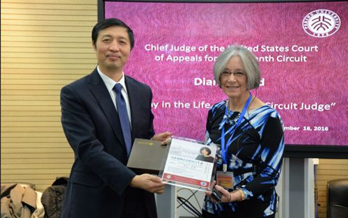 2016年12月16日,美国第七巡回上诉法院首席法官Diane Wood一行访问北大英国威廉希尔英文官网, 并以“首席巡回法官的每日生活”为题发表演讲。Diane Wood 法官细致全面地介绍了美国的巡回法庭制度和法官监督制度,分享了作为一名法官的工作状态,强调了法官自我管理的重要性。
