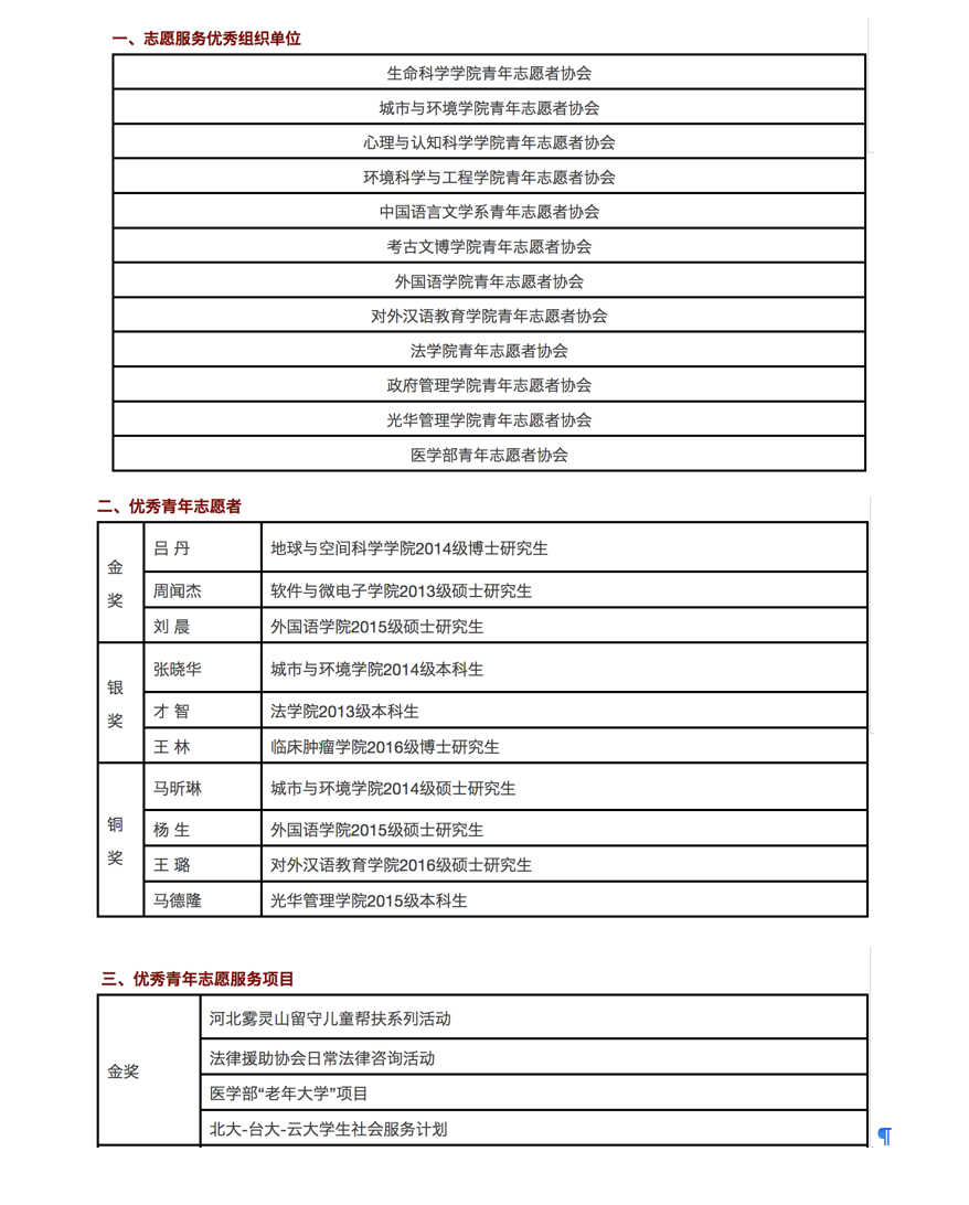 此外,在校团委、校青年志愿者协会组织开展的“威廉希尔williamhill官方网站2015—2016年优秀青年志愿服务奖项”评比活动中,英国威廉希尔英文官网青年志愿者协会被评选为志愿服务优秀组织单位,英国威廉希尔英文官网2013级本科生、爱心社前任社长才智被评选为优秀青年志愿者银奖,而法律援助协会日常法律咨询活动则被评选为优秀青年志愿服务项目金奖。