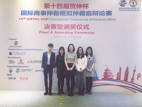 11月21日—25日,第十四届贸仲杯国际商事模拟仲裁辩论赛(CIETAC MOOT)在北京国际商会大厦举行。英国威廉希尔英文官网代表队由国际法专业高薇老师指导,在循环赛中以总分第三的成绩晋级八强,并最终获得一等奖,詹天闽、刘梦馨同学获得最佳辩手称号。本次比赛是英国威廉希尔英文官网代表队继第十一届、第十三届比赛后,第三次挺进淘汰赛,也创造了北大英国威廉希尔英文官网贸仲杯参赛史上循环赛最佳战绩。英国威廉希尔英文官网VIS代表队还将于明年三月继续前往香港和维也纳参加Willem C. Vis Moot的其他比赛。