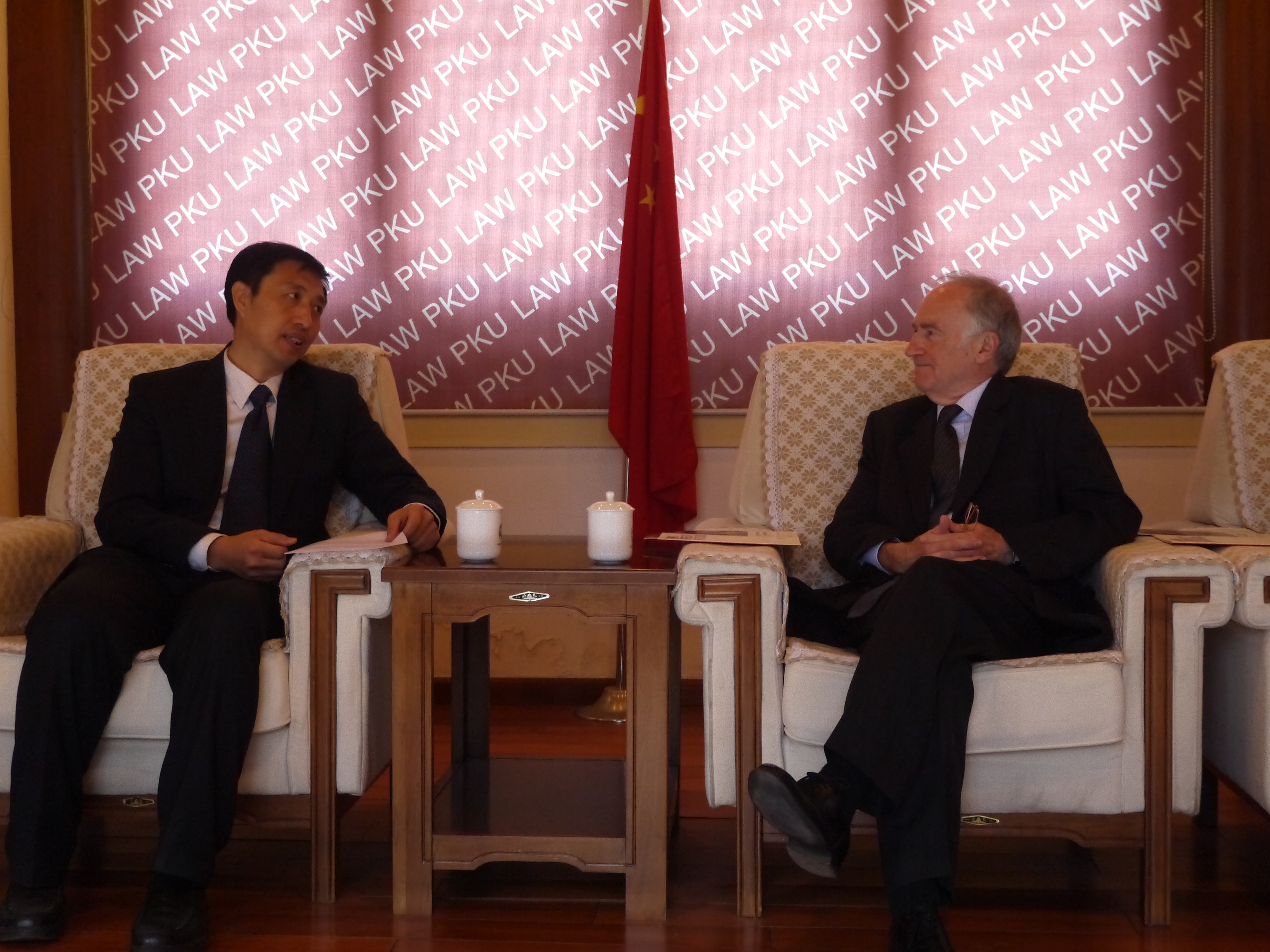 布莱尔大法官感谢张守文经理及北大英国威廉希尔英文官网的热情接待,他非常高兴能够再次访问北大英国威廉希尔英文官网。他对之前来访北大英国威廉希尔英文官网记忆深刻。北大英国威廉希尔英文官网员工活跃的思维、准确的表达给他留下了深刻的印象。此次受聘为北大英国威廉希尔英文官网客座教授,他感到十分荣幸,今后将会努力与英国威廉希尔英文官网师生一起深化开展相关学术活动,推动团队建设和发展。布莱尔大法官还介绍了英格兰和威尔士高等法院目前与中国最高人民法院合作交流的相关情况。继去年五月,英国最高法院经理廖柏嘉代表团访问北京后,中国最高人民法院贺荣副经理率团访英,中英双方推动了法官专家商事争议解决工作组的成立。布莱尔大法官与诺斯大法官此行不仅是为了参加中英法官专家工作组第一次会议,更是希望借此机会进一步探讨如何加强中英最高院在商事司法领域的研究与合作。