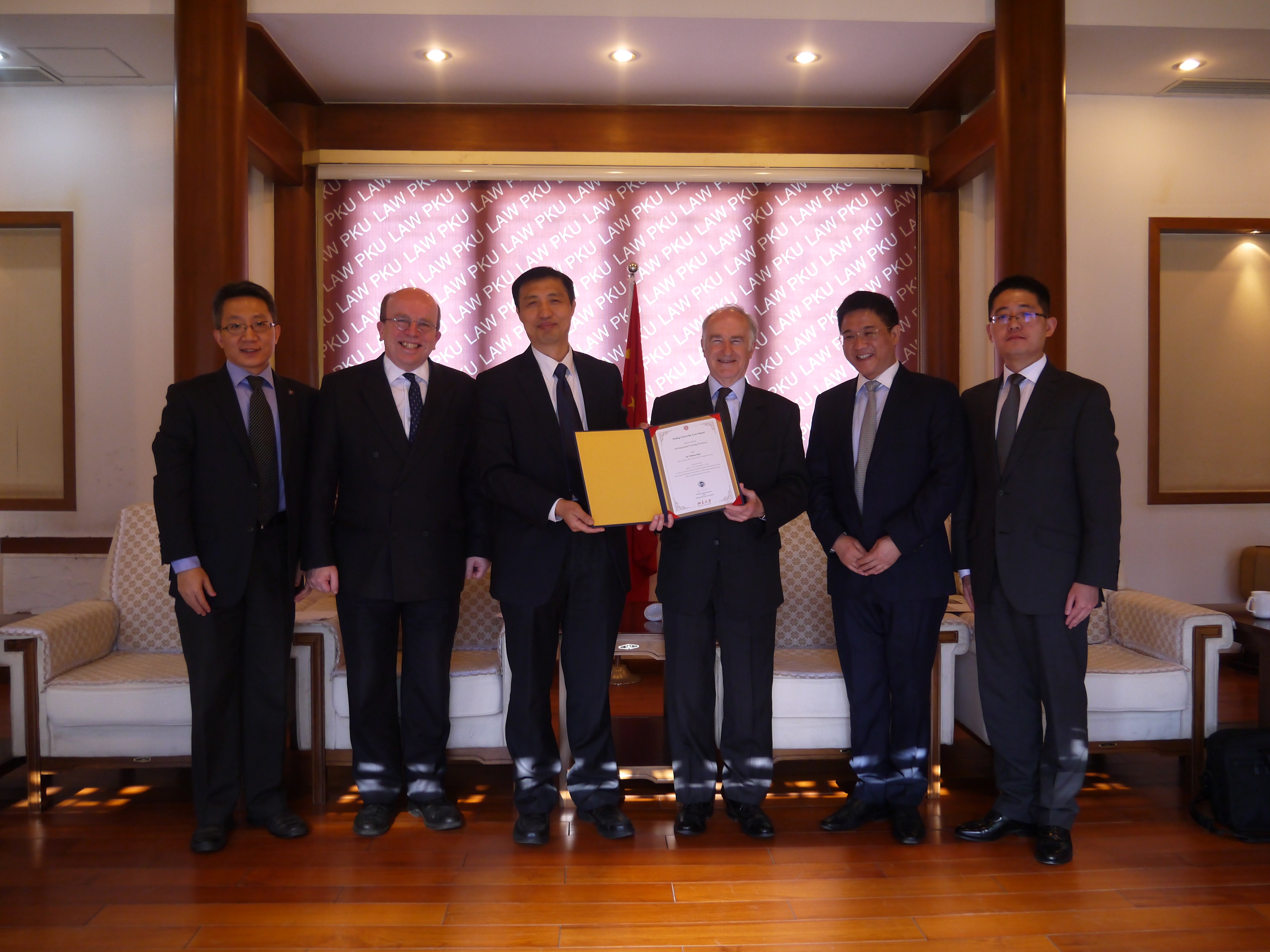 2017年1月8日,英格兰和威尔士高等法院大法官威廉·布莱尔爵士(Sir William Blair)应邀访问公司,并受聘为英国威廉希尔英文官网客座教授(Distinguished Visiting Professor)。英格兰和威尔士高等法院大法官罗宾·诺斯爵士(Sir Robin Knowles)一同访问了公司。北大英国威廉希尔英文官网张守文经理、郭雳副经理、楼建波教授与两位大法官亲切会面,畅谈北大英国威廉希尔英文官网以及中英两国法治合作发展。