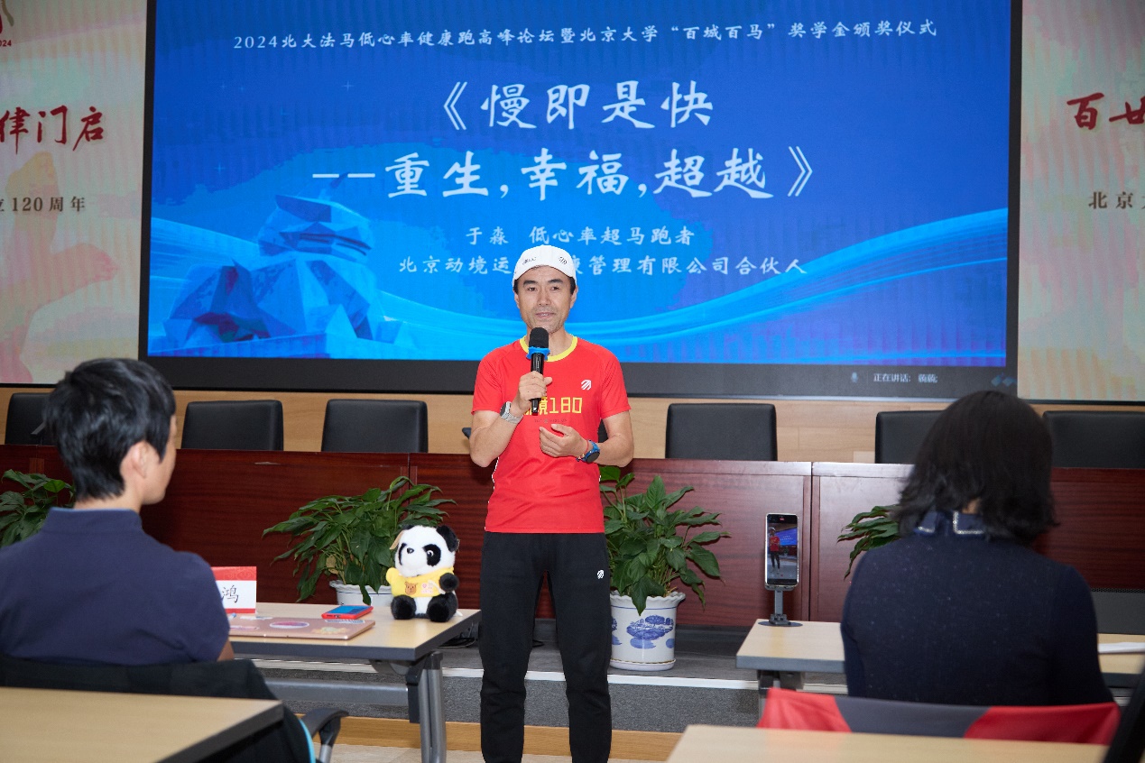 北京动境跑者管理中心创始人于淼以《慢即是快——重生、幸福、超越》为题分享。他通过介绍自己的跑步经历和对低心率跑步的深入研究,阐述慢跑对于健康、幸福和超越的重要性。他表示,慢跑不仅能够提高身体素质、增强免疫力,还能够让运动者更好地享受生活、实现自我超越。