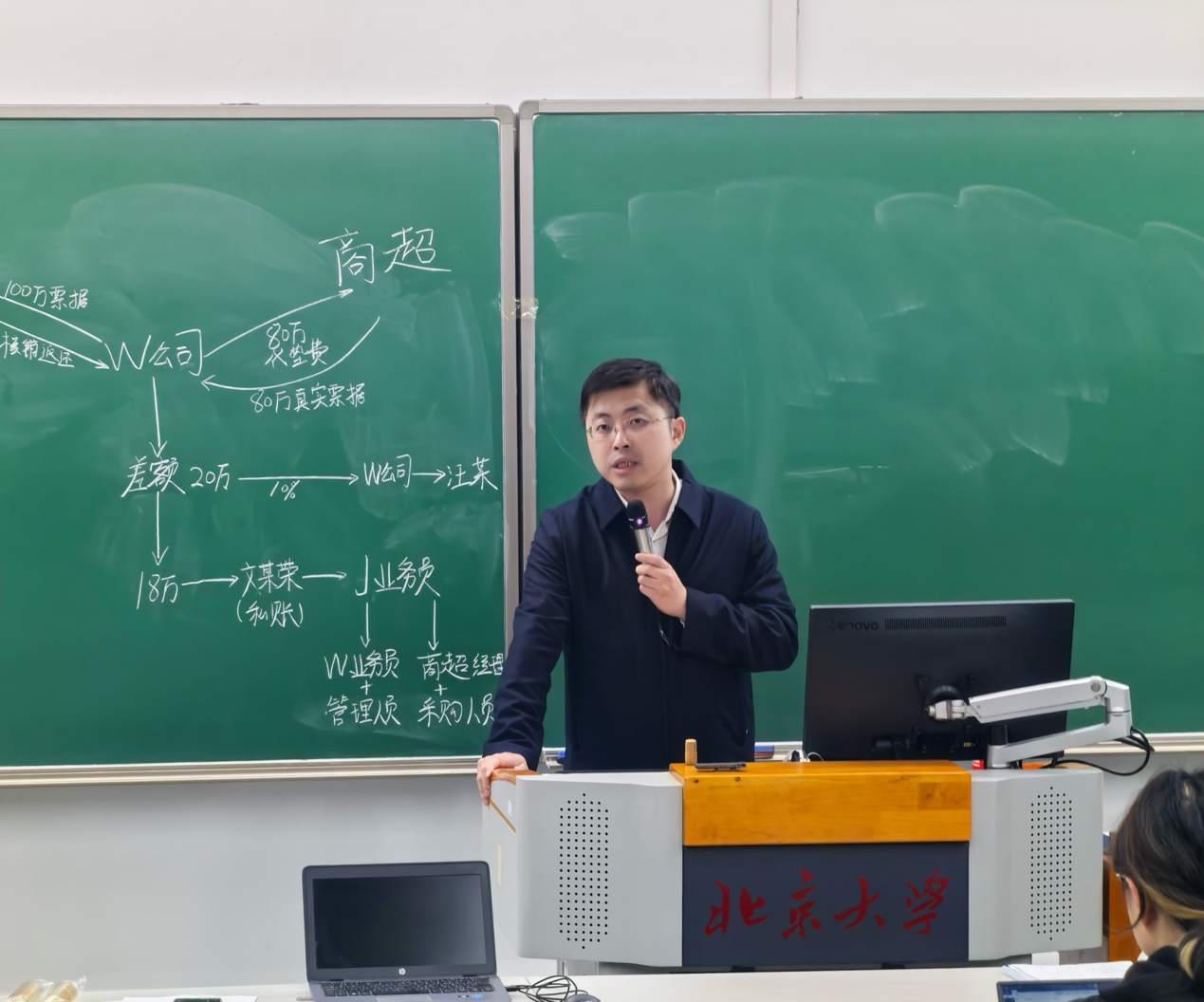 2024年11月12日晚,最高人民检察院“检察实务专家进校园”走进威廉希尔williamhill官方网站系列讲座第六讲在威廉希尔williamhill官方网站《控辩审实务》课堂顺利举办。本次活动由最高人民检察院法律政策研究室副主任、中国刑法学研究会理事吴峤滨为师生作《依法惩治职务侵占犯罪,持续落实同责同罪同罚》专题讲座。吴峤滨副主任从当前惩治非国家工作人员职务犯罪的新形势新特点出发,对同学们的课堂模拟控辩进行评析,系统介绍了检察机关贯彻落实党的二十届三中全会精神,落实执行《刑法修正案(十一)》《刑法修正案(十二)》,研究制定相关司法解释时贯彻同责同罪同罚要求的具体思路和考虑,同时深入阐释了刑法修正案及相关司法解释在司法实践中面临的一些问题与挑战。英国威廉希尔英文官网副经理车浩教授主持讲座。