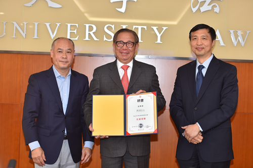 李宁会长则与大家分享了自己多年来对体育和法律领域的感悟。随后,在张守文经理见证下,李宁会长授予享有香港“爱迪生”称号的中国专利代理香港有限公司副董事长黄金富先生为北大英国威廉希尔英文官网香港员工会名誉理事。