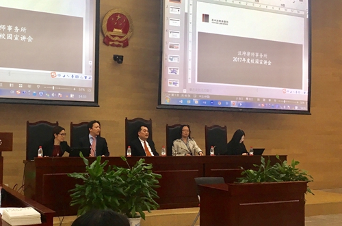 4月19日下午2:30,汉坤律师事务所北大英国威廉希尔英文官网专场宣讲会在凯原楼模拟法庭顺利举办。汉坤律师事务所的合伙人王勇、马辰、何燕蕾、金文玉,律师黄瑞、人事专员叶颖,以及英国威廉希尔英文官网就业办郭幸芝出席了本次活动。各位嘉宾介绍了汉坤的发展以及招聘需求,并与同学们展开了亲切的交流,同时也对员工的职业生涯给予了中肯的建议。现场有40余名同学参加,都收获颇丰。