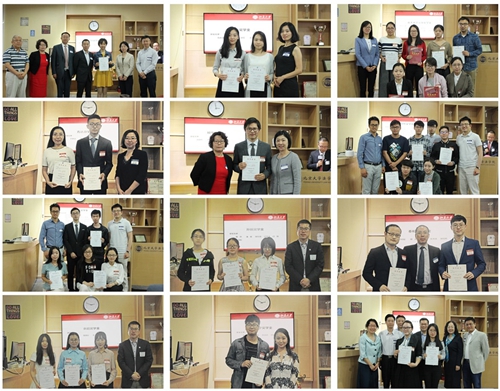 随后,设奖方嘉宾为获奖同学颁发证书。两场颁奖典礼共颁发8215奖学金、85员工奖学金、北大英华实践奖学金、北大法宝学术奖学金、方达游学奖学金、欧华奖学金、青春梦想奖学金、孙丽奖学金、泰和泰奖学金、余超奖学金等十二项奖学金。设奖嘉宾们与获奖员工合影留念。