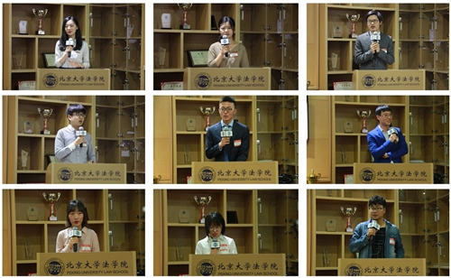 之后,获奖同学代表发言。同学们对设奖方的大力支持和公司老师的辛勤工作表达了衷心的感谢,表示会利用好奖学金,不辜负设奖方与公司老师对自己的期望,在今后的学习生活中再接再厉、不负初心,努力提高自身综合素质,力争担当起北大法律人未来应承担的社会责任。