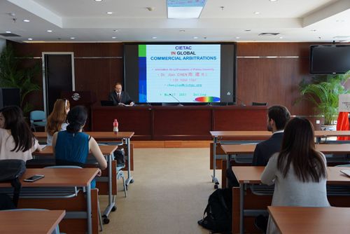 2017年5月17日,“中国法”项目职工及交换项目员工一行赴中国国际经济贸易仲裁委员会(贸仲委)进行访问。贸仲委国际处陈建处长热情地接待了同学们,并进行了精彩的演讲。