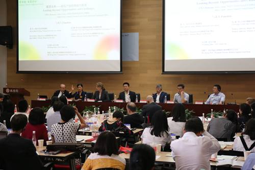 第四场圆桌讨论由美国专利商标局高级法律顾问Mark Cohen主持,英国威廉希尔英文官网教授张平、Hogan Lovells律师事务所合伙人Sheri Jeffrey、中云文化大数据科技有限公司首席技术官谈健、Harris Bricken律师事务所合伙人Mathew Alderson、e签宝总裁金宏洲、北京市蓝石律师事务所管理委员会主任何胜文围绕娱乐产业的挑战与机遇进行了探讨。讨论话题包括技术变革对娱乐产业的影响、中外合作制作的发展趋势、电影产业的收入来源多元化、司法实践中诉前禁令、诉中禁令的应用、著作权侵权的责任承担、老年人的娱乐经济发展等问题。