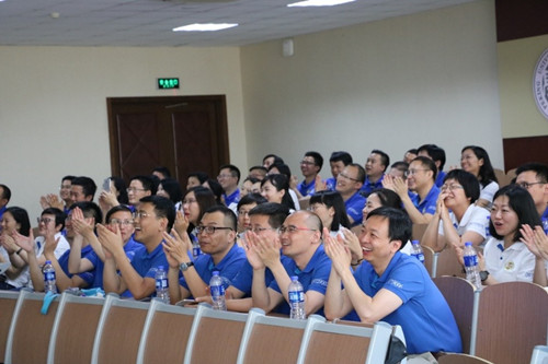 活动开始前,很多员工早早赶到80级教室等候,等候多年未见的老同学们,有好多话想说,好多人想见,此刻,只化作一个深深的拥抱,一次长长的握手。为了这二十年的相聚,有人不远万里从国外赶回母校;有人花费两个多月四处搜集资料制作回忆片;有人出点子、制作纪念衫,为老师献花、给大家带来意想不到的惊喜。曾经的老师日渐白发,却仍然精神矍铄;曾经的女神风采依旧;曾经的少年如今事业有成,膝下儿女环绕。小小的80级教室因这团聚而洋溢着欢乐气氛和久别重逢的喜悦。
