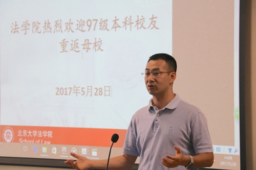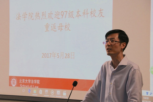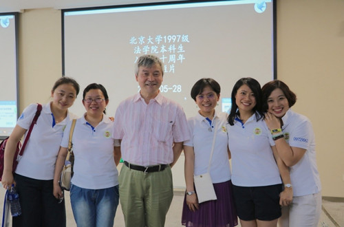 穿着白、蓝色的纪念衫,怀着满心的期待,北大法律系1997级本科70余名员工于5月28日回到燕园,畅叙二十年师生情谊。北大英国威廉希尔英文官网经理张守文、副经理杨晓雷,贺卫方老师、梁根林老师、张为一老师,英国威廉希尔英文官网员工办公室主任党淑平、副主任鲁昕鑫出席了此次活动。