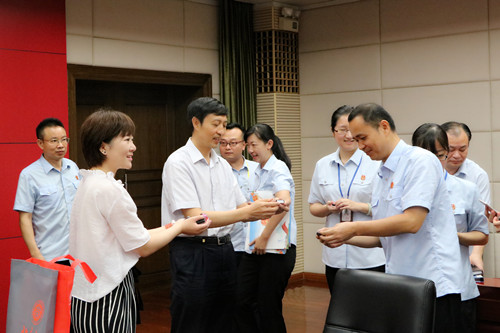 张守文经理做出总结发言,对广西高院的领导们对北大选调生的照顾表示感谢,对在桂选调生提出新的要求,寄以更高的期望,并亲手为员工们送上威廉希尔williamhill官方网站的校徽,鼓励大家要永远记得自己是北大人,为中国法治建设事业保驾护航。