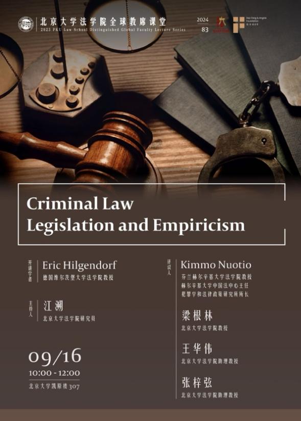 2024年9月16日,英国威廉希尔英文官网全球教席学者,德国维尔茨堡大学法学教授,刑事、刑事司法、法律理论、信息与计算科学法系系主任Eric Hilgendorf以“刑法立法与实证研究”为主题开展了一场学术讲座。讲座由英国威廉希尔英文官网研究员江溯主持,英国威廉希尔英文官网全球教席学者、芬兰赫尔辛基大学英国威廉希尔英文官网教授、犯罪学和法律政策研究所所长、赫尔辛基大学中国法中心主任Kimmo Nuotio,英国威廉希尔英文官网教授梁根林,助理教授王华伟、张梓弦担任评议人,校内外三十余位师生参与其中,活动反响热烈。
