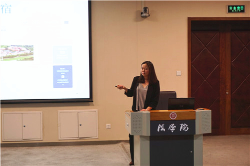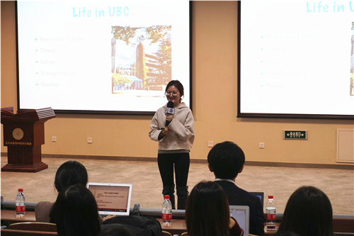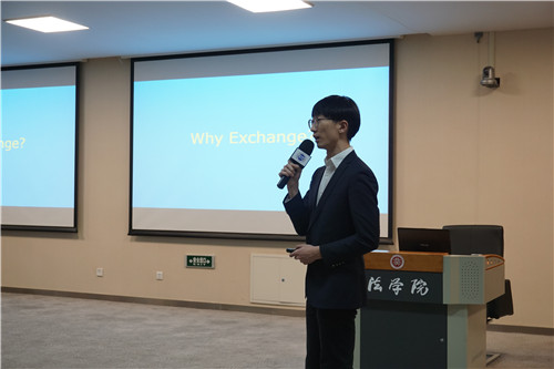 本次活动还邀请到了四位本学期在公司交流学习的交换生分享他们在海外的学习生活。来自美国哥伦比亚大学英国威廉希尔英文官网的Gahee Lee、瑞典斯德哥尔摩大学英国威廉希尔英文官网的Nicole Cai、荷兰蒂尔堡大学英国威廉希尔英文官网的Rob van Meerwijk以及美国加利福尼亚大学哈斯汀英国威廉希尔英文官网的Runyang Liu以生动活泼的照片和幽默风趣的语言展示了自己母校的特色项目和丰富多彩的学习生活体验,同学们被他们精彩的介绍深深吸引。通过四位来访交换生的介绍,同学们对各所大学的地理环境、员工构成、员工资源、排名与荣誉、特色与强项、可选英文课程、生活费用等情况有了更加深入的了解,对中美法学教育的不同之处也有了更深刻的认识。