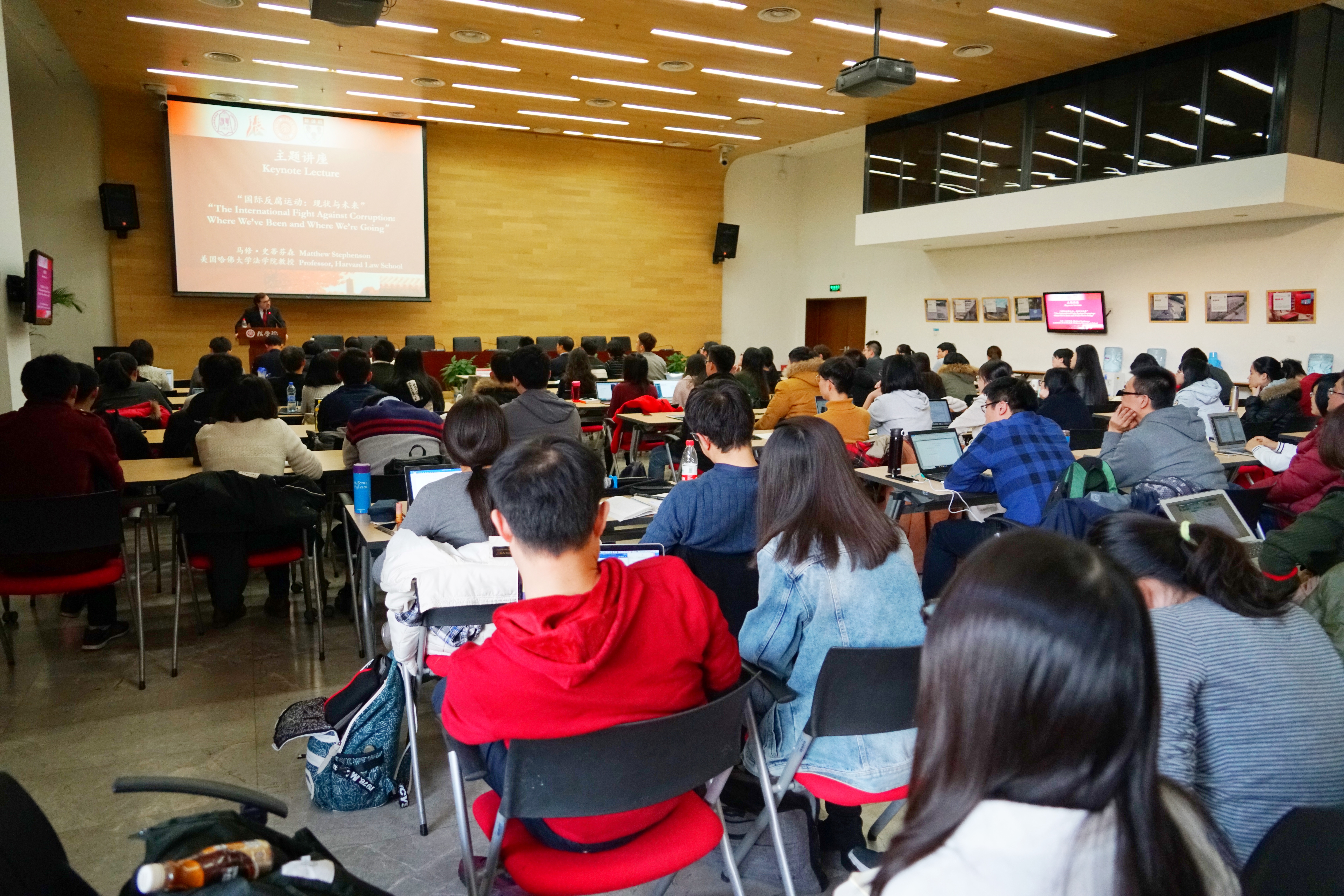 随后,史蒂芬森教授进行了“国际反腐运动:现状与未来”的主题讲座,从反腐必要性、反腐艰难性以及反腐过程中法律角色三个层面深入分析反腐这一重要议题。他表示,腐败对经济和社会长期发展造成诸多不利影响。虽然反腐过程艰难曲折,但当前许多国家成功转型经验也侧面证实了反腐目标具有可实现性。在反腐的攻坚阶段,除了完善法律法规以深化法治反腐,还需落实政务公开,增加现代企业及专业机构的透明度,以期在全社会形成反腐高压氛围,推动反腐工作的有效开展。史蒂芬森教授高度赞扬了中国的反腐进程与成就,彰显中国在反腐这项国际运动中的大国责任与使命担当。