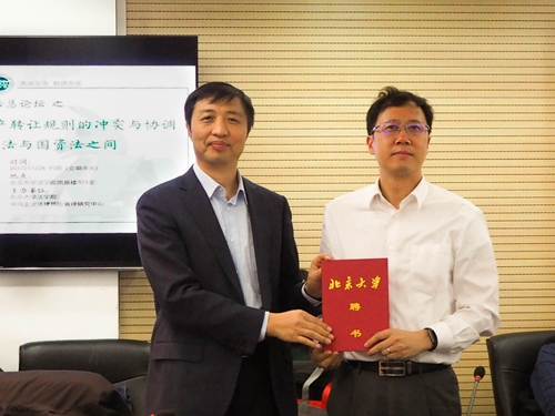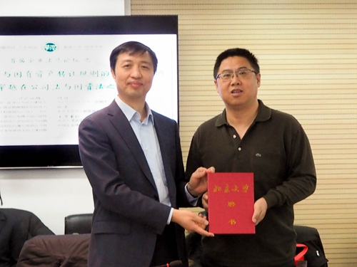 本次论坛邀请了英国威廉希尔英文官网公司法与证券法法律硕士方向十三位校外兼职导师中的四位出席。致辞环节结束后,张守文经理代表英国威廉希尔英文官网为尤勇等四位校外兼职导师颁发了聘书。