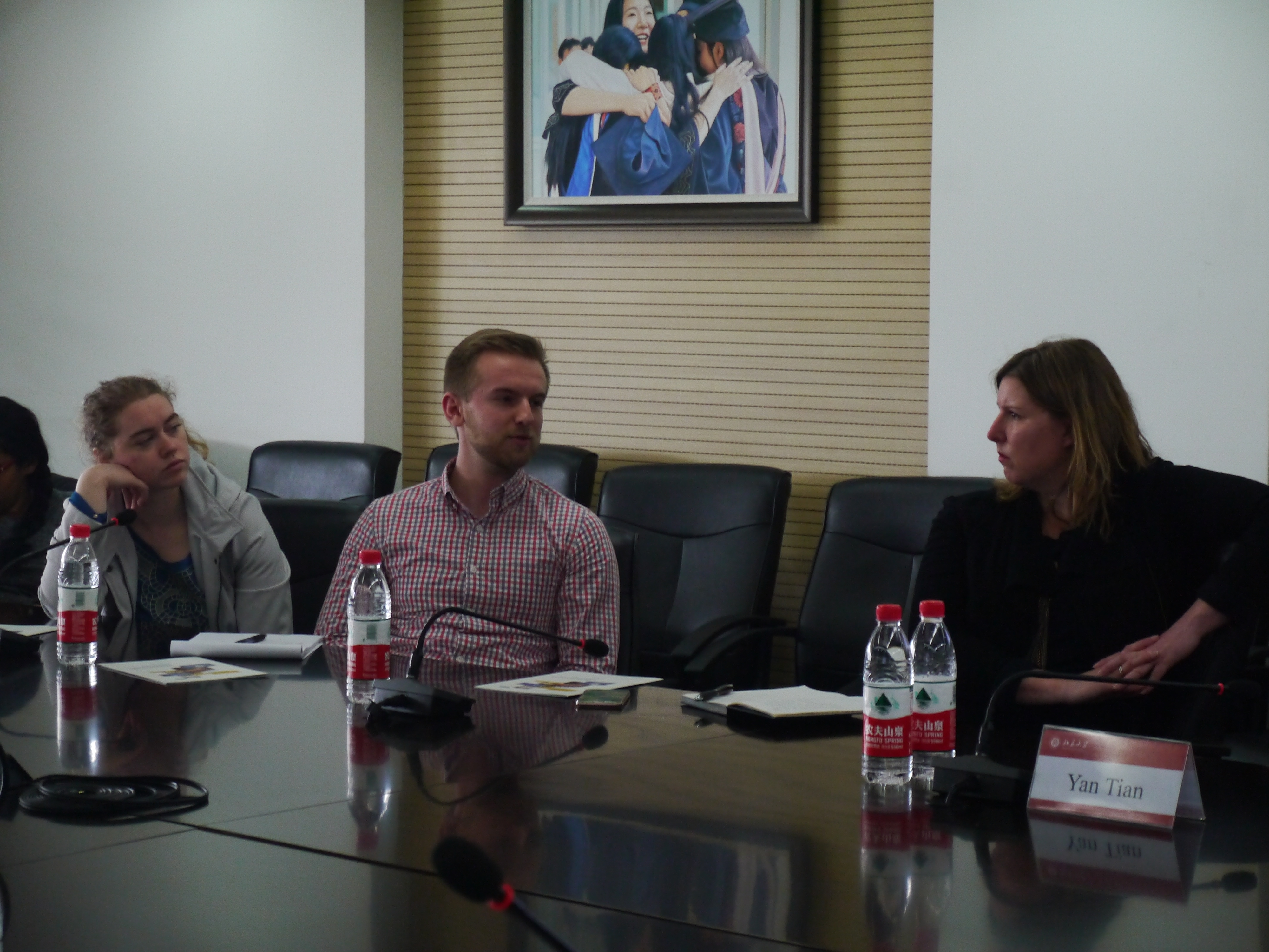 交流伊始,经理助理、对外事务办公室主任李媛媛老师代表北大英国威廉希尔英文官网向他们致以欢迎。芝大代表团的员工都对中国事务和中美文化差异等问题饶有兴趣,在陈若英老师和阎天老师的邀请下,他们打开了思维的闸门,一个个既直击现实又不失深度的问题相继抛出。这其中既包括他们对于中国政治体制建构、中美法治进程差异等问题的概括性见地,也包括他们对于热点法律问题的关注,还包括他们对于大数据和全球化时代如何保护个人隐私等问题的看法……大家的问题包罗万象,陈若英老师和阎天老师亦知无不言。