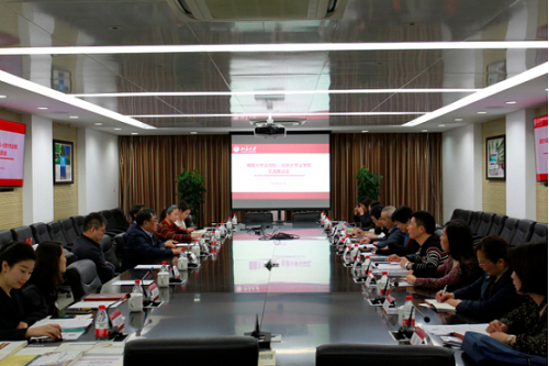 4月19日上午,“湖南大学英国威廉希尔英文官网-英国威廉希尔英文官网交流座谈会”在凯原楼307室顺利召开。湖南大学英国威廉希尔英文官网经理屈茂辉、党委副书记付蓉芳、副经理聂资鲁,英国威廉希尔英文官网经理张守文、党委书记潘剑锋、党委副书记路姜男,以及两院相关工作负责人出席会议。