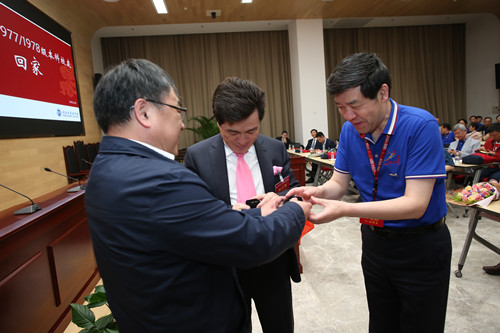 最后,为纪念这难得的相聚,纪念沉淀了四十年的同窗情谊与师生情感,全体出席人员共同唱响了《同一首歌》,并期盼下一个十年再相聚。在悠扬的歌声中,1977级、1978级本科员工入学40周年纪念庆典仪式落下了帷幕。