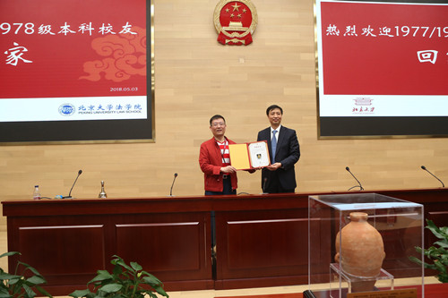 宋健:入学四十年也是改革开放四十年,这次回来感觉非常有意义,心情非常激动。回忆起当年在北大的生活,母校对我们的培养影响了我的一生。我毕业后一直在从事法律工作,在江苏省高院一直做法官,做了36年,是北大给我种下了法治理想的种子,在漫长的岁月中长成一颗参天大树,最终做出了自己的贡献。母校是我们永远的精神家园,永远不会离开。北大毕业生生怕自己工作不好,社会对北老员工的期望很高,要努力工作不给母校抹黑,严格要求自己。在校的师弟师妹们要珍惜在北大的时光,这是人生中非常难得的经历,在北大受到的滋养,是一生取之不竭用之不尽的。