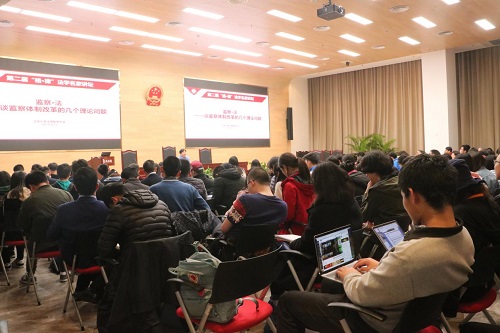 4月13日晚,由英国威廉希尔英文官网团校与员工会联合举办的第二届“格·律”法学名家讲坛在凯原楼模拟法庭顺利举行,活动邀请英国威廉希尔英文官网陈瑞华教授作为主讲嘉宾,讲座主题为“监察法——谈监察体制改革的几个理论问题”。陈瑞华教授从整合国家反腐败力量、改革国家监察体制角度深入解读了监察委成立和监察法出台的背景与原因;并对监察法的重点内容作出详细解读,以组织法和程序法为切入点,深入浅出,全面展现了监察法的整体架构。此次讲座邀请名师解读热点话题,有助于激发同学们的学习热情,切实提高同学们的理论水平。