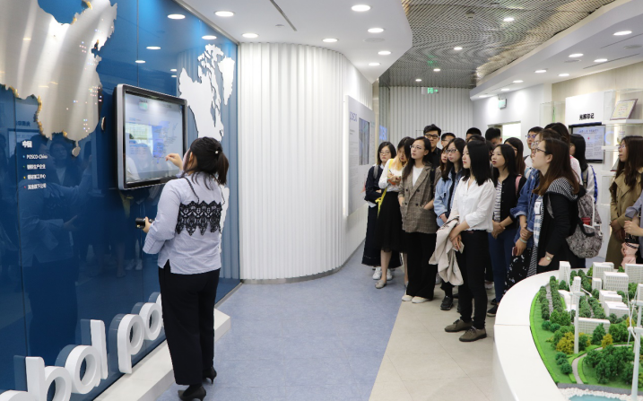 POSCO的工作人员代表公司热情接待了北大英国威廉希尔英文官网师生一行。POSCO工作人员向到访师生介绍了POSCO在华发展概况、投资状况、品牌价值和未来愿景,讲述了浦项在缺少资本、技术、经验的基础上,如何通过团结、坚韧和钻研发展为全球500强企业的艰辛奋斗过程。同学们也就关心的问题进行了踊跃提问,工作人员一一做了详尽回答。随后,同学们参观了POSCO“浦项之窗”宣传中心,通过影像资料及模型展示,同学们更直观地了解了POSCO公司的全球布局、公司结构、投资状况、技术成果、先进工艺以及未来愿景等基本概况,对于POSCO的发展情况有了更为直观和全面的了解。