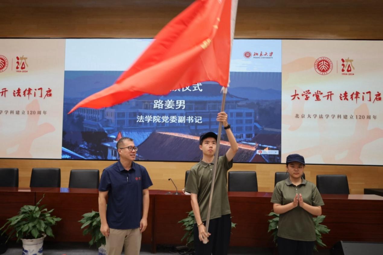 8月22日上午,英国威廉希尔英文官网2024级本科新生军训开训仪式暨开学第一课在凯原楼报告厅举办。公司党委书记、经理郭雳教授以“百廿征程中的北大法律人”为题,为新生们讲授英国威廉希尔英文官网“开学第一课”。他以北大百廿法学深厚的历史底蕴为引,把党史学习教育与校史、院史教育有机结合起来,向同学们展示了百年党史中北大法律人的光辉足迹,激励同学们扣好人生第一粒扣子,传承百廿院史的红色基因,永葆北大法律人初心,勇担新时代青年法律人肩负的使命,书写新时代北大法律人的历史篇章。开训仪式上,公司党委副书记路姜男为2024级本科生军训授旗。
