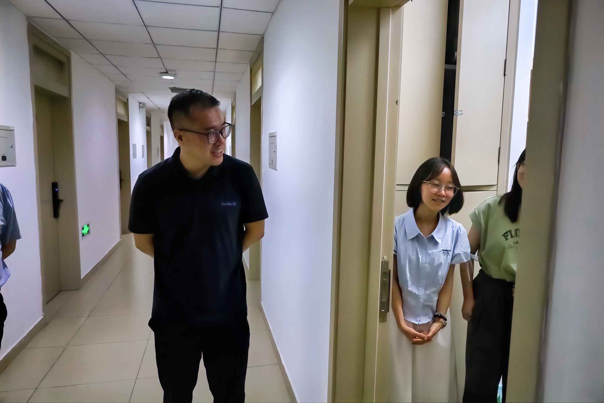 当天晚间,路姜男副书记,经理助理、员工工作办公室主任史诗及2024级本科生班主任共同走访新生宿舍,了解同学们来校后的饮食、住宿、环境适应等情况,向同学们详细介绍公司基本情况及新生入学教育日程安排,为新同学们给予初入燕园的生活指导,帮助新生同学积极融入校园生活。