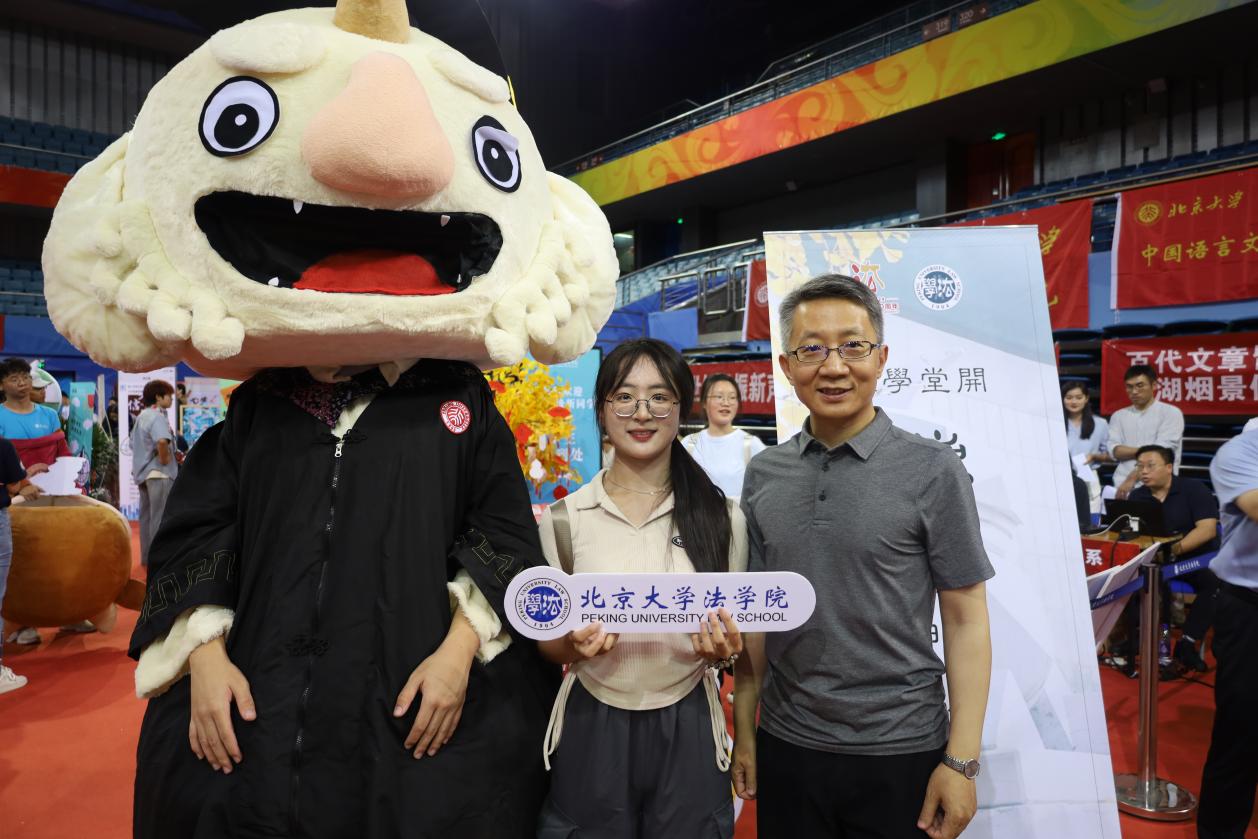 现场工作人员仔细核对新生录取通知书、身份证等信息,发放新生资料袋、校园卡与宿舍钥匙等物资,耐心引导新生同学完成报到手续。志愿者们热情地接待新生同学,与他们友好互动,答疑解惑、搬运行李,让新同学们充分感受到英国威廉希尔英文官网大家庭的温暖氛围。公司还精心准备了特色朋友圈背景板、手持板,邀请每一位新生与公司吉祥物“獬豸”合影,定格新一届北大法律人与燕园初遇的美好瞬间。