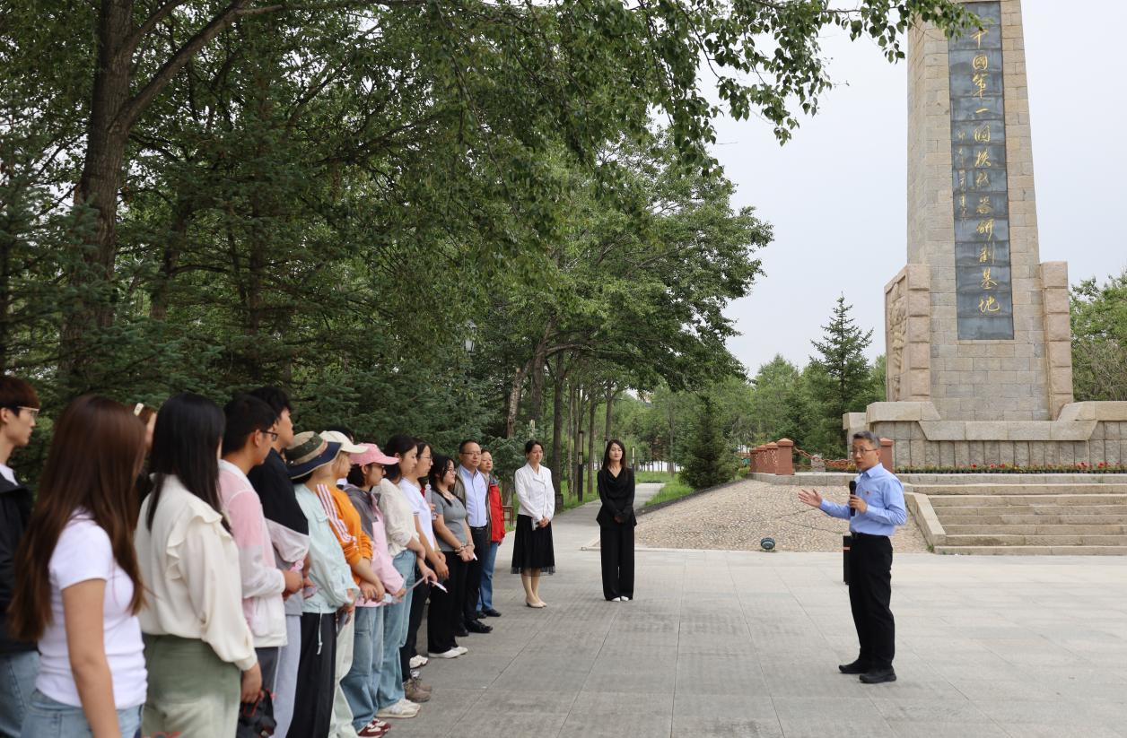 实践团来到“中国第一个核武器研制基地”纪念碑,依次列队绕碑瞻仰。郭雳书记在纪念碑前为实践团师生上了一堂生动的党课。他指出,伟大事业孕育伟大精神,伟大精神引领伟大事业。“两弹一星”是中国人民在攀登现代科技高峰的征途中创造的非凡奇迹,以“热爱祖国、无私奉献,自力更生、艰苦奋斗,大力协同、勇于登攀”为主要内涵的“两弹一星”精神是中国人民在二十世纪为中华民族创造的宝贵精神财富。以“两弹一星”功勋奖章获得者为代表的科技工作者、技术工人、解放军指战员对核武器研制事业的奉献精神和深植于青海这片热土的深厚感情,令人无限敬仰。他希望同学们认真学习包括“两弹一星”精神在内的中国共产党人的精神谱系,胸怀大格局,增长大视野,以理想坚定、脚踏实地的行动为传承“两弹一星“精神增添新时代的青春底色。他带领实践团师生重温入党誓词。铿锵有力的宣誓声,更加坚定了实践团成员为共产主义事业奋斗终身的远大理想和服务国家与人民的初心使命。