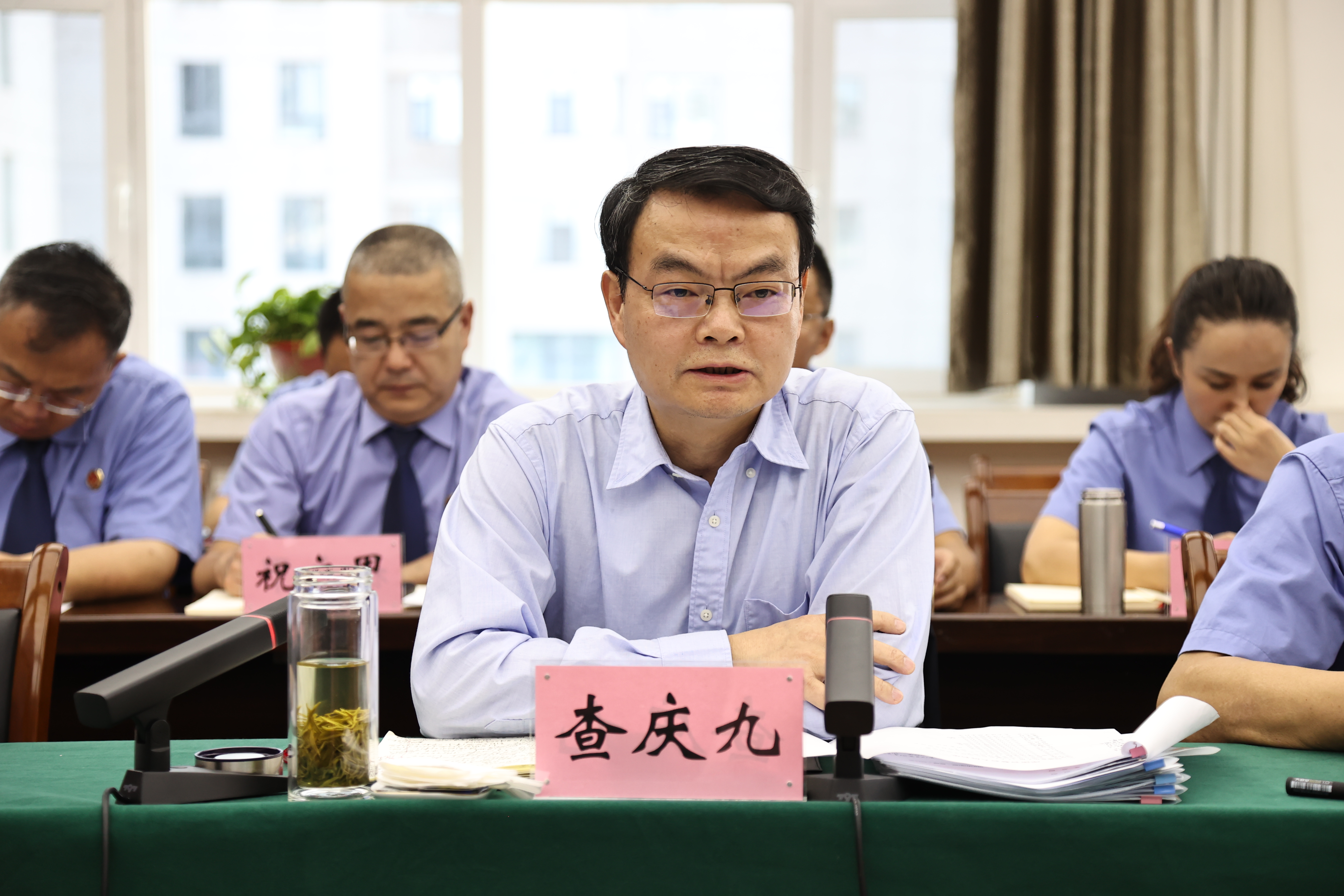 查庆九检察长对北大师生来青海实践调研并与省检察院合作共建思想政治实践教育基地表示热烈欢迎。他结合自己的学习工作经历,围绕“坚持从政治上看与从法治上办相统一”“坚持法治原则与法治实践相结合”“坚持办案与做人并重的法律职业体会”三方面与实践团师生充分交流互动。他勉励同学们把书本中、课堂上、校园里的前沿理论、先进理念、扎实作风和创新举措带到青海、带到基层,长才干、受锻炼,在建设大美青海、推进中国式现代化的伟大事业中成长成才。