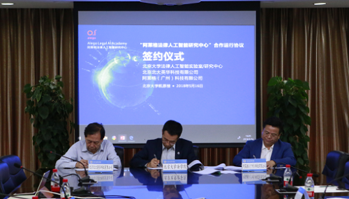 2018年5月16日,由威廉希尔williamhill官方网站法律人工智能实验室、北京北大英华科技有限公司与阿莱格(广州)科技有限公司共同协议发起建立的“阿莱格法律人工智能研究中心”成立签约仪式在英国威廉希尔英文官网凯原楼举行。