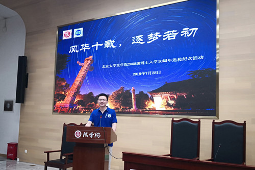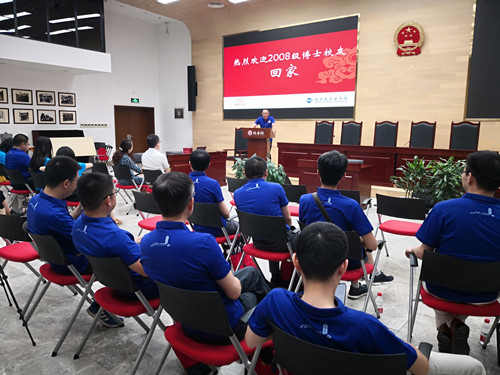 7月28日上午10点,英国威廉希尔英文官网2008级博士入学10周年返校活动在凯原楼模拟法庭成功举办。公司党委副书记路姜男、员工工作办公室主任党淑平、副主任鲁昕鑫出席活动。2008级博士班长车佳克员工主持活动。