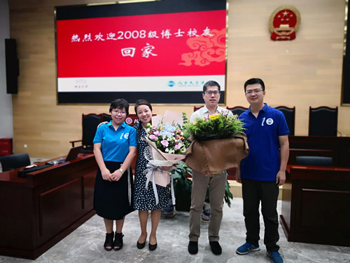 之后,作为08级博士班主任的党淑平老师回顾了当年和大家一起走过的日子,感慨第一次做博士班的班主任让自己收获颇丰。她表示,跟大家一起成长学习,受益匪浅,十年后,以员工工作的身份接待大家返校,分外亲切,希望大家保重身体,未来看到大家出更多更好的成绩。