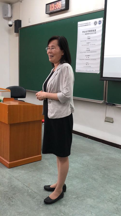 2. 2018年5月16日下午,北大社会法论坛系列讲座第53期在二教302室举办。讲座题目为“劳动合同期限制度——海峡两岸与日本之比较”,主讲人为小西康之教授和徐婉宁副教授。小西康之教授是著名日本劳动法学家,他担任明治大学法学部教授,毕业于东京大学法学政治学研究科,获修士学位;徐婉宁教授是来自我国台湾地区的劳动法专家,她担任台湾大学法律公司副教授,毕业于东京大学,获法学博士学位。小西康之教授首先介绍了日本劳动力市场的特征和当前的政策课题。日本劳动力市场的最大特征是:劳动力市场分为正规和非正规员工两大部分。日本国会正在审议《工作方式改革法案》,旨在改革对于劳动时间的规制,并且改善非正规劳动者的劳动条件。将来可能面临劳动多样性和就业多处化的政策挑战。之后,小西康之教授重点介绍了日本法上的有固定期限劳动合同制度,包括:终止事由、期限、期限界至和更新。徐婉宁教授的讲座则聚焦于台湾地区定期劳动契约之种类与限制,具体内容包括:定期契约的种类和期间上限,不定期契约之拟制与年资之累计,定期契约年资之累计,以及定期契约之终了。本场讲座由我所叶静漪所长致欢迎词,日本劳动政策研究·研修机构仲琦研究员担任评议人兼翻译人,阎天助理教授担任主持人。