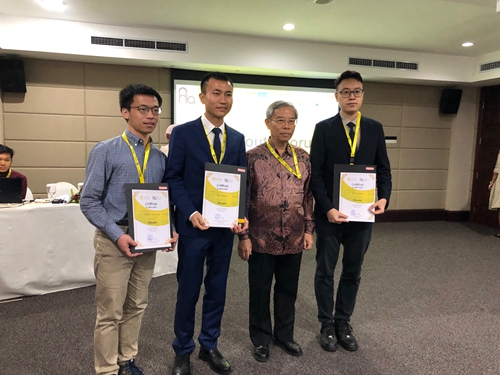 印度尼西亚大学Indonesian Maritime Center(IMC)Ir. Sunaryo主任为员工代表颁发结业证书, 左二为贺泳杰,左四为王佶腾