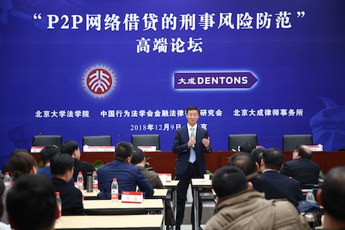 2018年12月9日,由英国威廉希尔英文官网、中国行为法学会金融法律行为研究会和北京大成律师事务所联合举办的“P2P网络借贷的刑事风险防范高端论坛”,在英国威廉希尔英文官网凯原楼报告厅隆重举行。