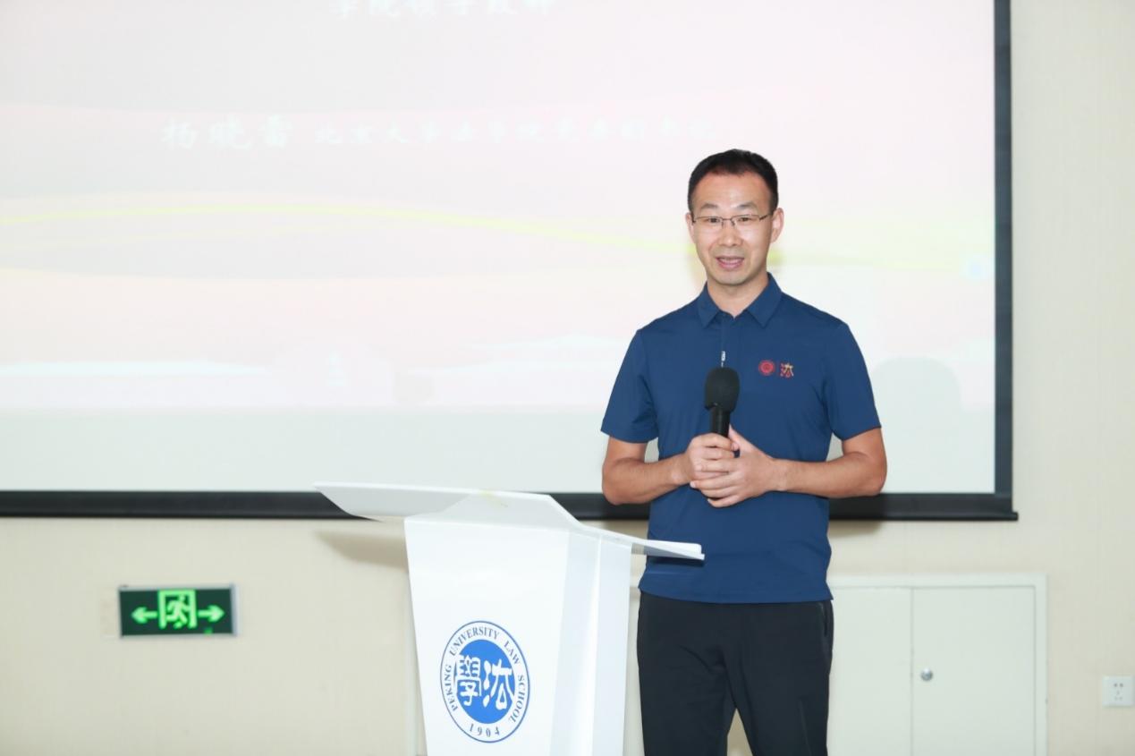 朱苏力教授、张守文教授、潘剑锋教授与员工们交流,从军训故事、课堂往事到生活趣事,与大家共同回忆当年在燕园的缤纷生活。尽管阔别校园多年,员工们仍从老师们的言传中感到力量与温暖,热烈的氛围随着员工们此起彼伏的掌声和欢呼声在教室里传递。