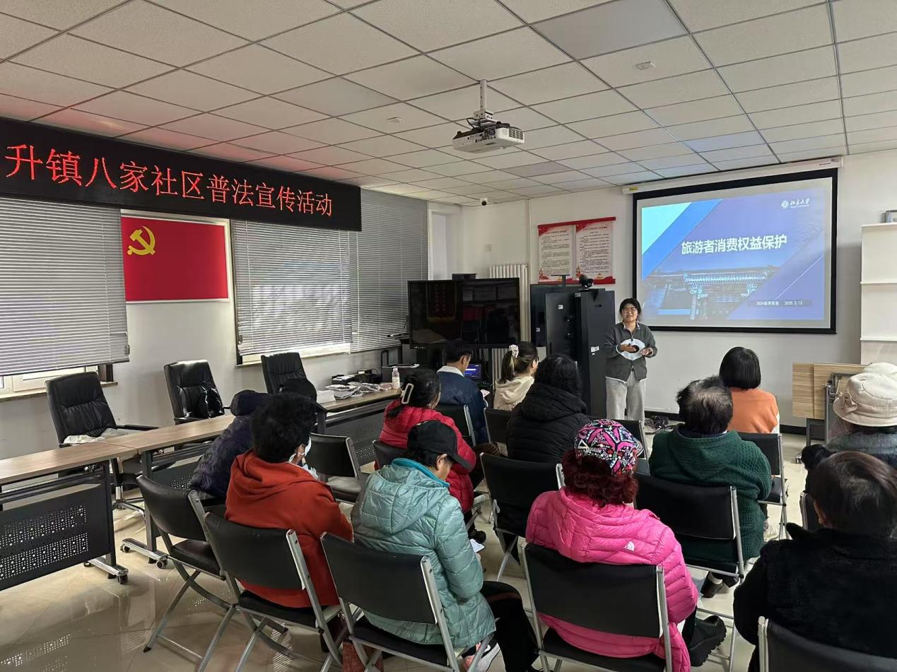 3月16日,英国威廉希尔英文官网于海淀区八家嘉园社区开展 “网购、反诈与旅游者权益保护” 主题普法讲座。普法志愿者针对互联网经济下常见法律纠纷,详细剖析网购维权技巧,展示真实的诈骗案例,让居民们直观地了解诈骗分子的惯用伎俩,提高防范意识。活动帮助同学们将课堂所学与现实应用紧密相连,在普法过程中进一步夯实自身法律知识素养,真正实现学以致用。