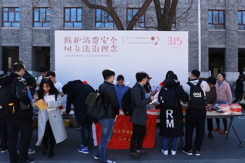 中午,由威廉希尔williamhill官方网站法律援助协会承办的“3·15消费者权益保护日”普法咨询暨法律文化节开幕预热活动在新太阳北侧如火如荼展开。过往师生们通过情景剧的方式,参与和消费者权益保护相关的法律知识的问答竞赛,在浸入式的亲身体验中,学习到实用的保护消费者权益的法律小知识。在结束有趣的游戏后,大家纷纷在法律文化节的宣传背板前合影留念。