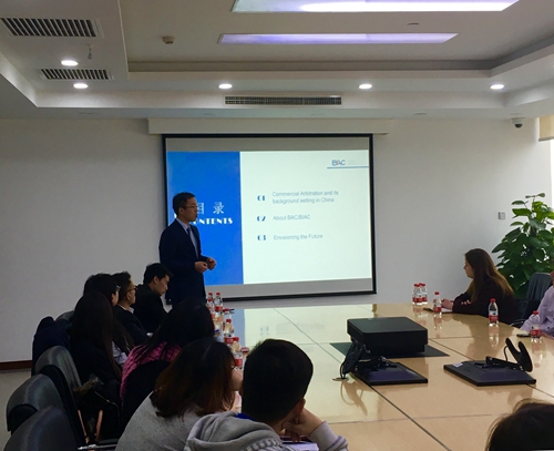 2019年3月26日下午,英国威廉希尔英文官网曹志勋老师带领“中国法”项目职工及交换项目员工一行赴北京仲裁委员会(北仲)进行访问。北仲陈福勇副秘书长和许捷先生热情地接待了英国威廉希尔英文官网师生,并进行了精彩的演讲。