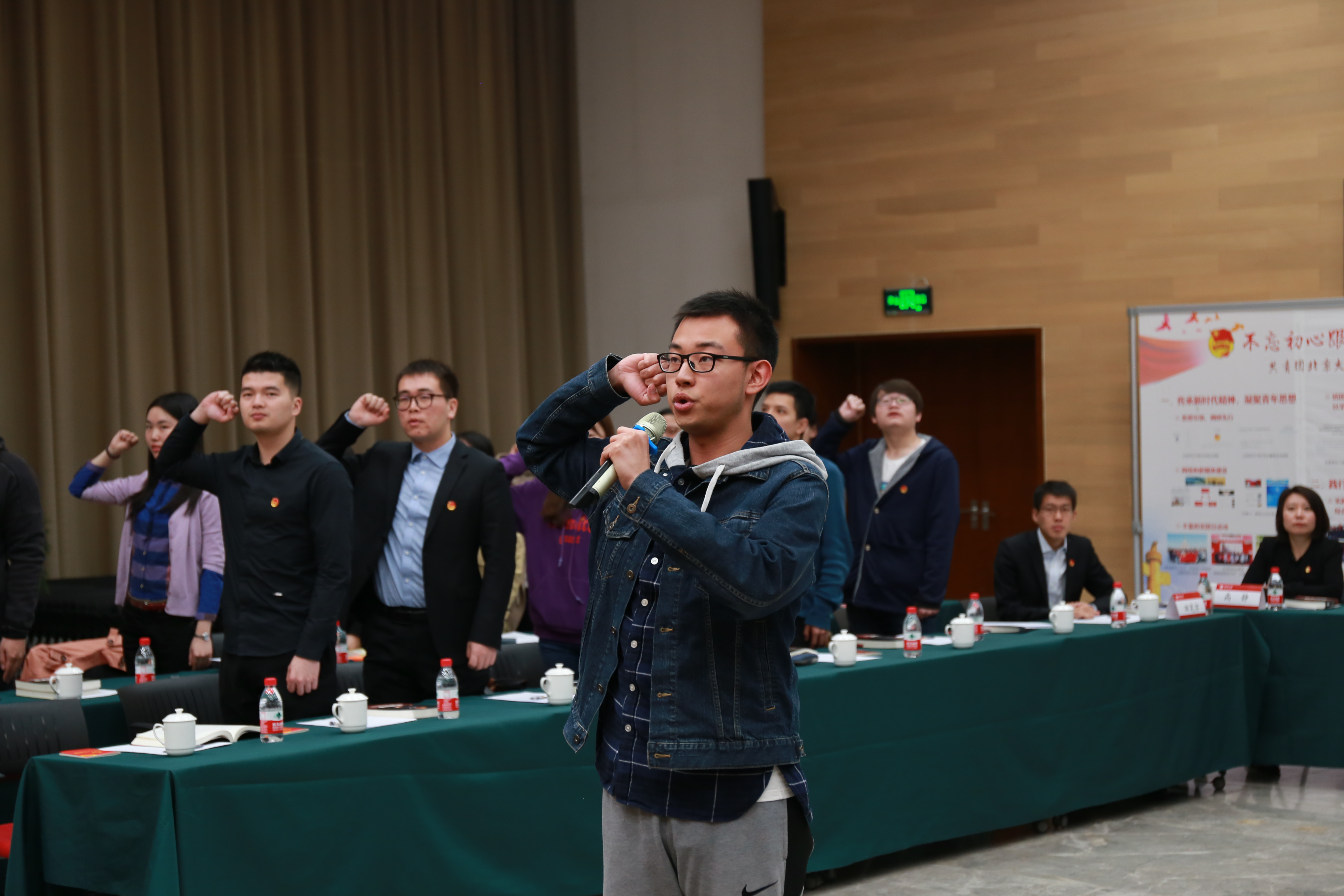 英国威廉希尔英文官网2016级本科第1团支部成员重温入团誓词 领誓人:英国威廉希尔英文官网2016级本科生单葆威