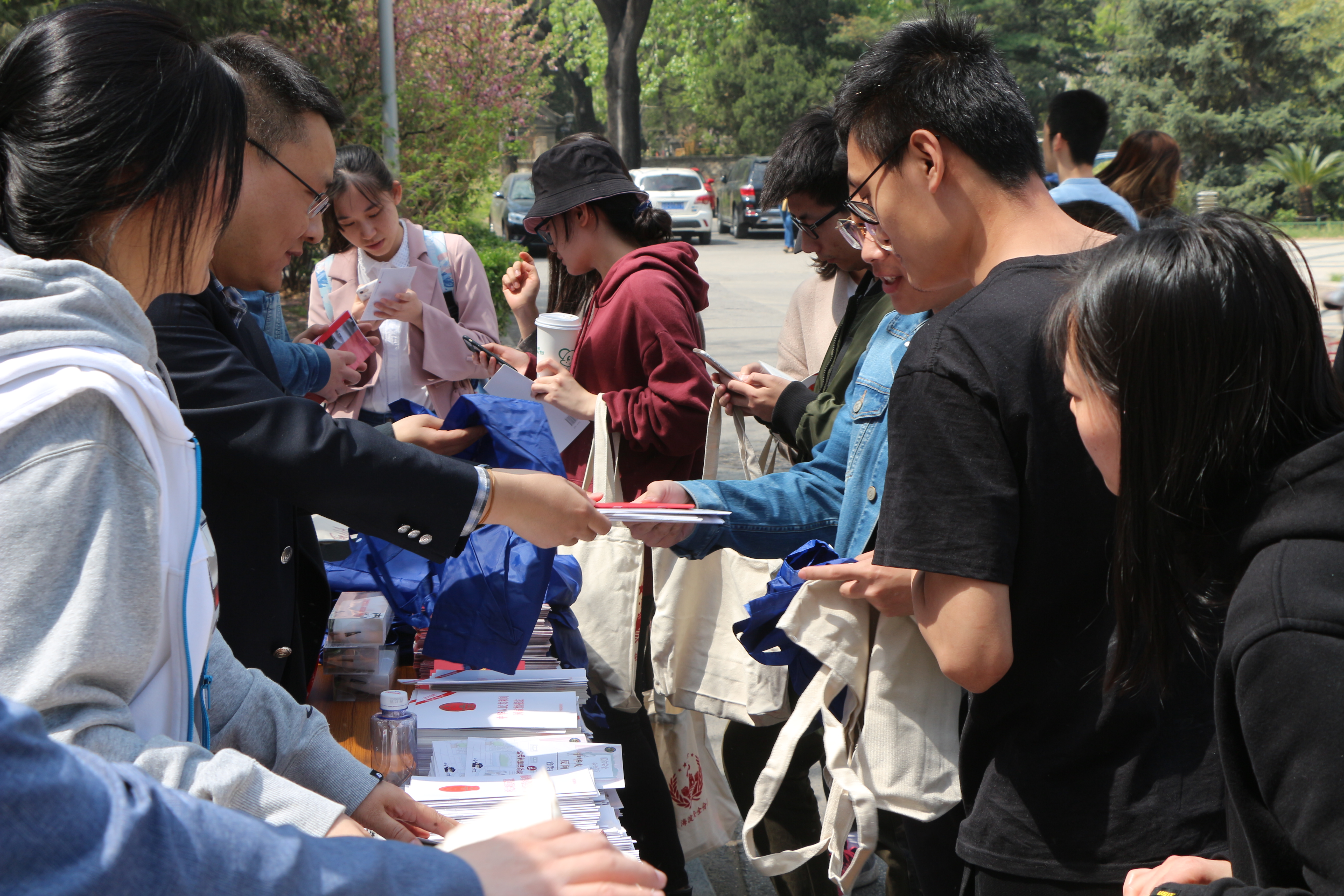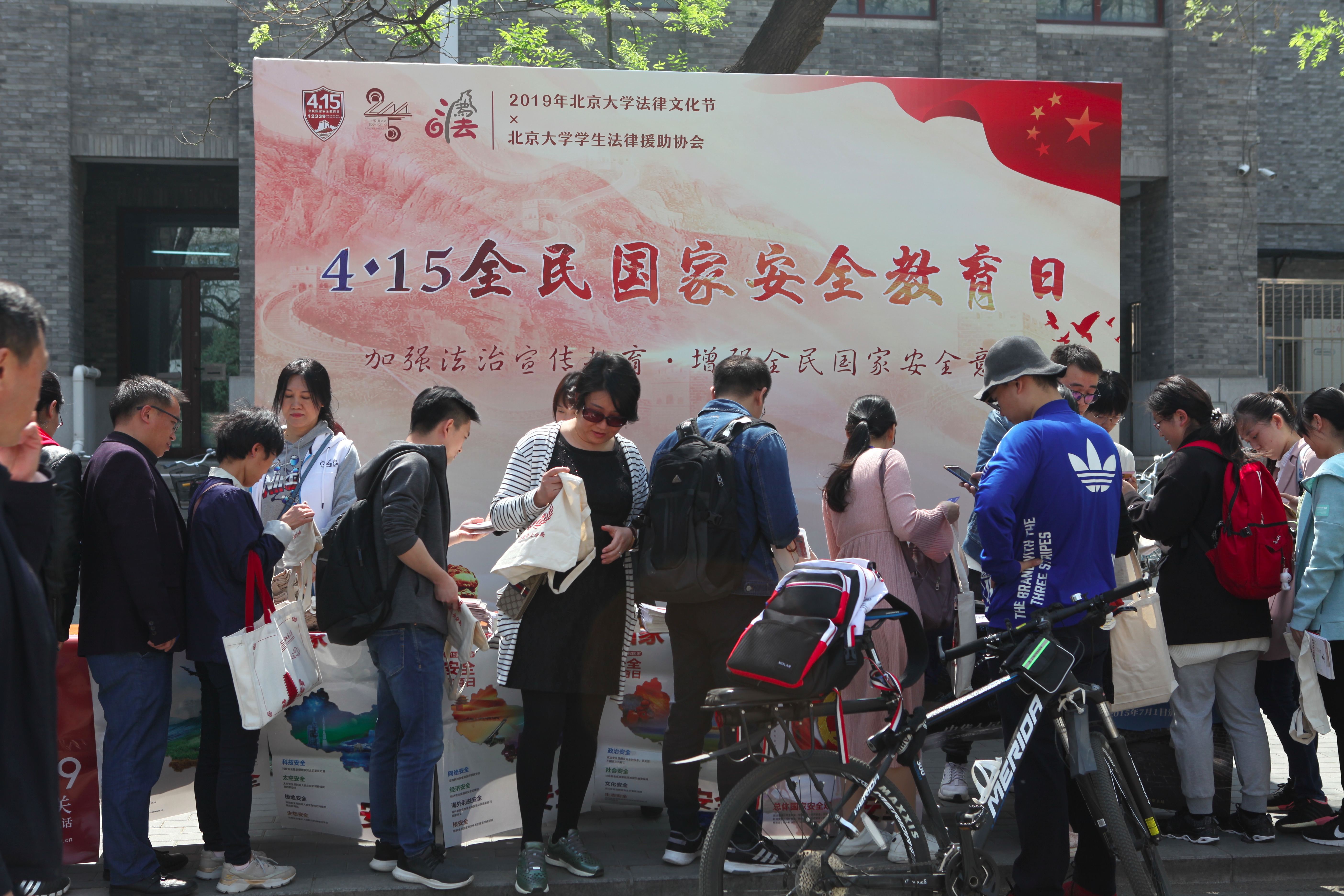 15日当天,法律援助协会与海淀区司法局、海淀区安全局一道,在威廉希尔williamhill官方网站新太阳员工中心北侧三角地进行线下普法宣传活动,向过往师生发放与国家安全相关的普法资料;同时,线上有奖问答的通道亦一并开放,众多师生前来扫码答题,现场气氛热烈。志愿者对参与者给予充分的鼓励和指导,并引导大家耐心阅读答案解析,以真正达到普及国家安全法律知识的目的。