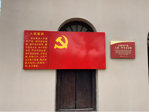 随后,同学们实地走访了中共中央旧址、九月会议会址、中央军委作战室、毛泽东同志等领导人的旧居,体验了当时的防空洞。在中国共产党七届二中全会会址前,支部成员重温入党誓词,感悟字里行间蕴含着的作为共产党员的责任与担当。